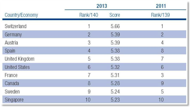 Si la France perd quatre places depuis 2011, elle tire son épingle du jeu en continuant d’attirer les touristes grâce à son riche héritage culturel. Ses infrastructures de transport terrestre et ferroviaire sont toujours parmi les meilleures mondiales (5ème rang). Cependant, elle perd des points à cause de sa politique générale d’attribution des visas touristiques. Celle-ci n’encourage pas suffisamment le développement qui décline cette année (35ème rang mondial). De même, dans la catégorie « Attitude de la population envers les touristes », la France arrive seulement en 80ème position sur 140.