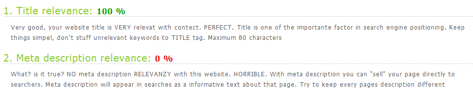 Les tests réfèrent à des domaines variés, tels que la valeur de son site web en euros, la qualité de sa réalisation, le respect des standards du web, un référencement optimisé, les performances techniques, la qualité du graphisme, du design et la compatibilité des couleurs, le nombre de liens qui renvoient vers le site …