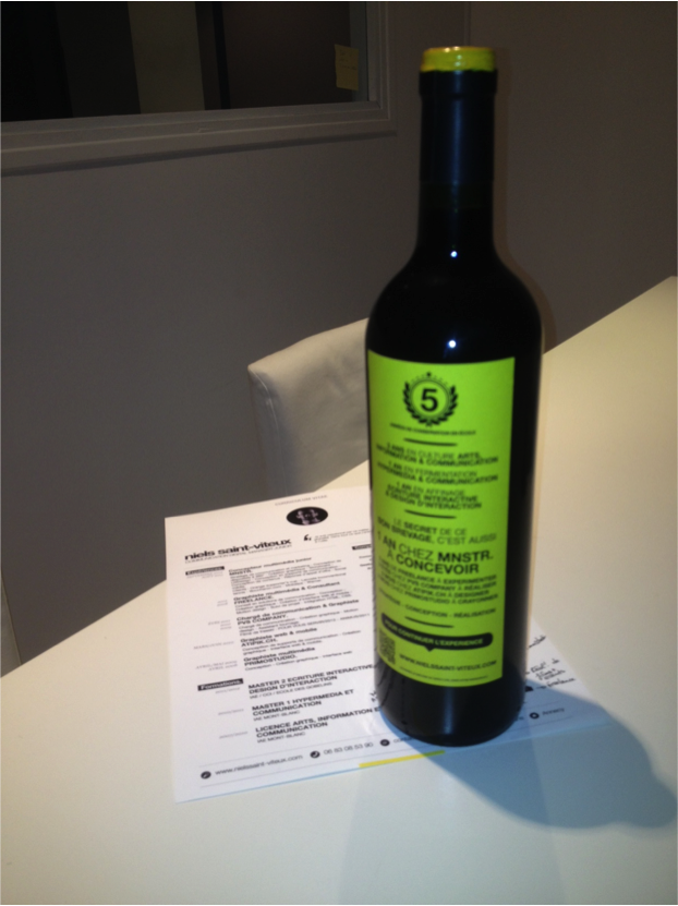 En décembre dernier, nous avions reçu à l’Agence un autre CV original – dans un style plus hédoniste – puisque celui-ci avait la forme d’une bouteille de vin ! Alors à la question « Est-ce que ça marche vraiment pour attirer l’attention ? », notre réponse est clairement OUI ! Et bien que nous ne consommons pas d’alcool (en tous cas, pas pendant les heures de travail !), nous avons reçu Niels Saint-Viteux pour un entretien.
