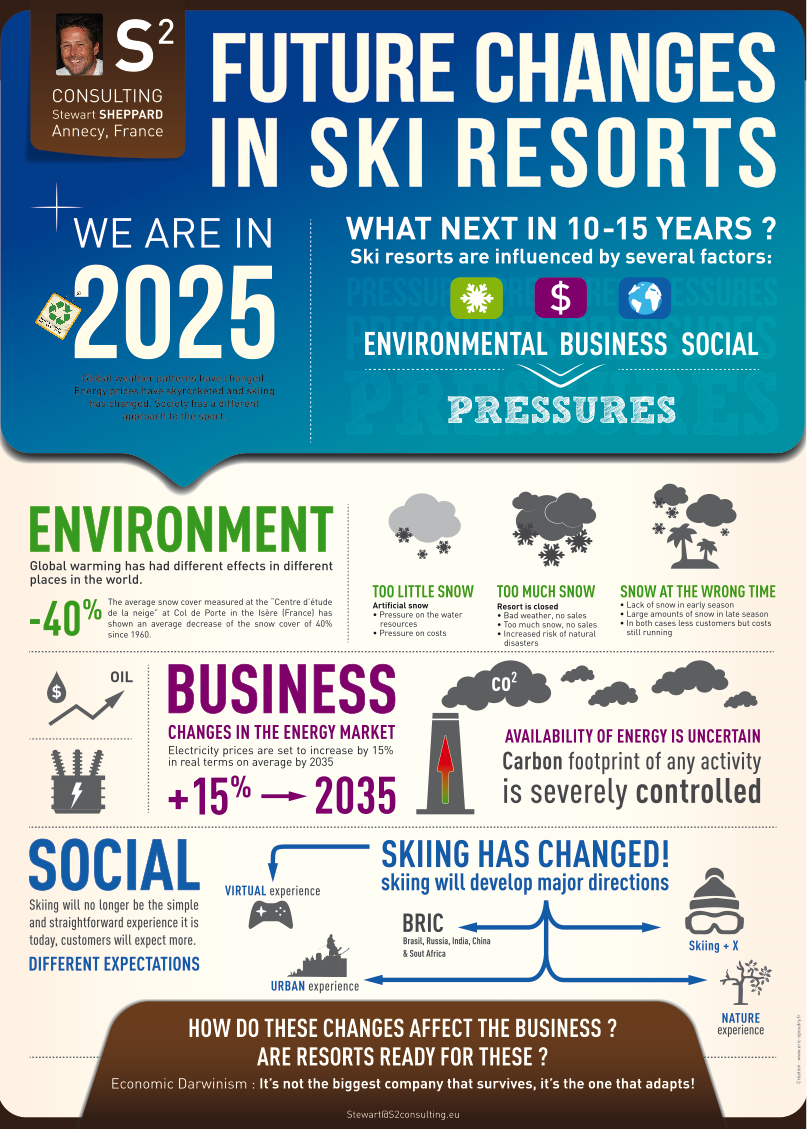 Nous avons particulièrement apprécié le poster de Stewart Sheppard de S2 Consulting sur les futurs changements dans les stations de ski.