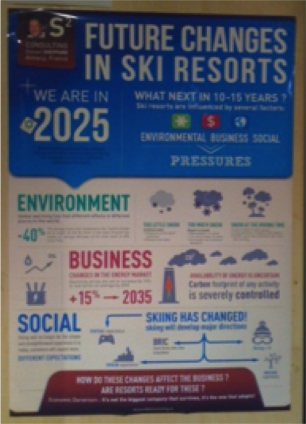 Nous avons particulièrement apprécié le poster de Stewart Sheppard de S2 Consulting sur les futurs changements dans les stations de ski.