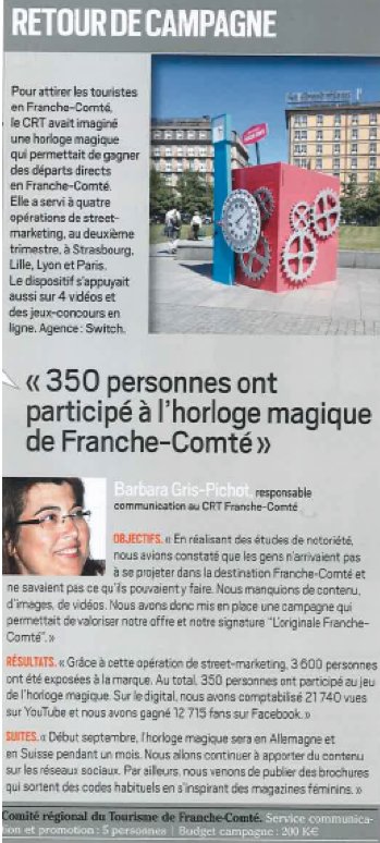 InterMédia, le magazine dédié aux professionnels de la communication en Auvergne Rhône-Alpes a publié dans son numéro dédié aux tendances marketing quelques lignes d’interview d’Armelle Solelhac, PDG de SWiTCH. Elle y parle de mise en marché des destinations touristiques de montagne et notamment de son expérience autour du monde de 274 stations de ski dans 27 pays sur 5 continents. A lire !