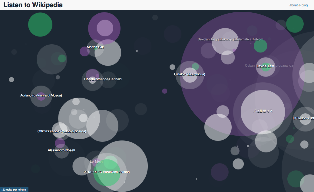 Imaginé par Stephen LaPorte et Mahmoud Hashemi, qui ont déjà proposé par le passé une carte géographique sur les modifications Wikipédia, cette représentation musicale en temps réel est inspirée du projet Listen to Bitcoin.