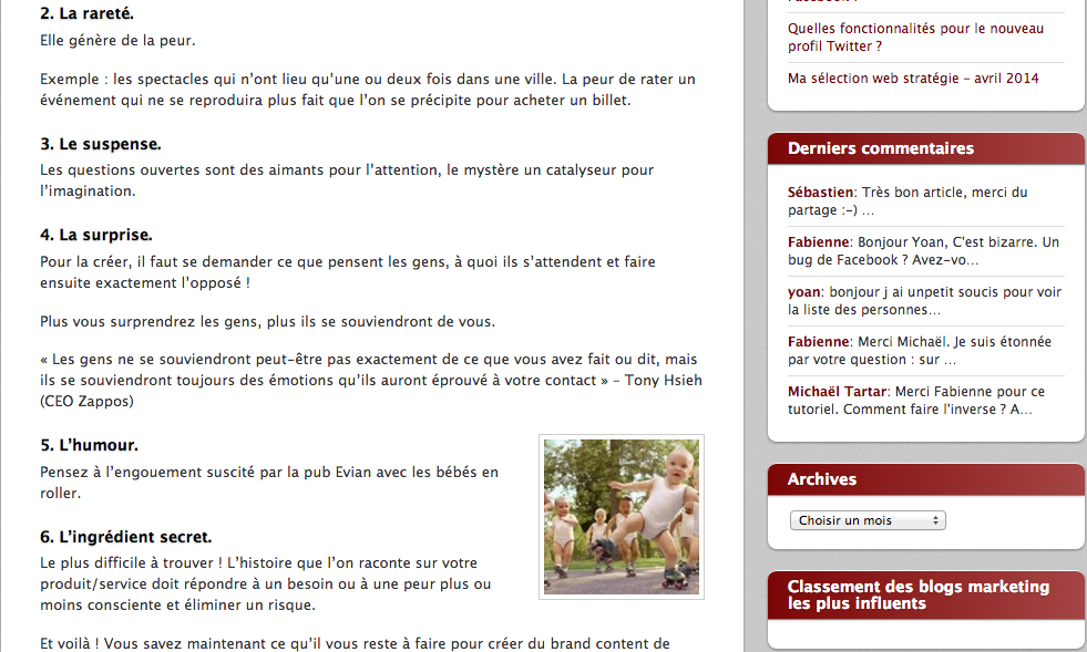 Habitués du #WIA en tant que participants, nous serons cette année sur scène ! Nous présenterons une conférence sur les 6 ingrédients pour créer un brand content de qualité sur les média sociaux. Ce sera une présentation #nobullshit avec des exemples concrets issus de cas réels. Nous serons dans nos petits chaussons, puisque seront présentes à nos côtés des superstars du web français : Christophe Ramel – connu aussi sous le pseudonyme de Kriisiis – amènera son expertise concernant Facebook et Twitter, Florian Le Goff de Mailjet, Fabien Cazenave de la fondation Mozilla, Caroline Vincelet de Talentéo, Stéphane Favereaux du Comptoir Digital, Geoffrey Dorne, Designer, Guilhem Bertholet serial entrepreneur qu’on ne présente plus, Laurent Jacquet de Be Angels, Linda Belaidi qui explicitera ce qu’est l’intelligence économique pour les petites entreprises, Virginie Debuisson de Valeur d’Images, le célébrissime Eric Dupin de Presse-Citron et Muriel de Don d’Opquast qui parlera de la qualité web.