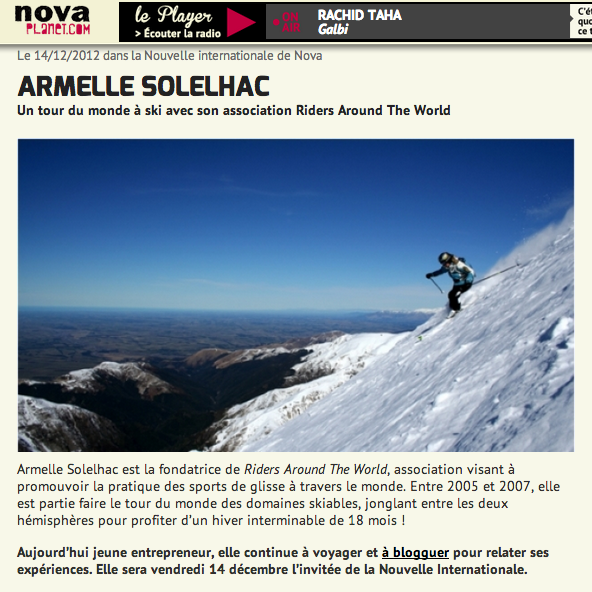 Le 14 décembre dernier, Armelle Solelhac, Fondatrice de SWiTCH était l’invitée de la matinale de Radio Nova pour parler de son tour du monde des stations de montagne à l’origine de l’Agence.